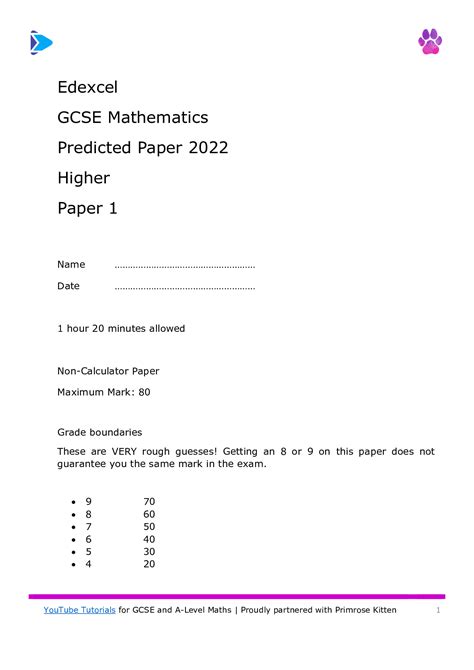 Free PDF Predicted Paper 1 June 2014 Higher Tier Edexcel Style Nook Open Library